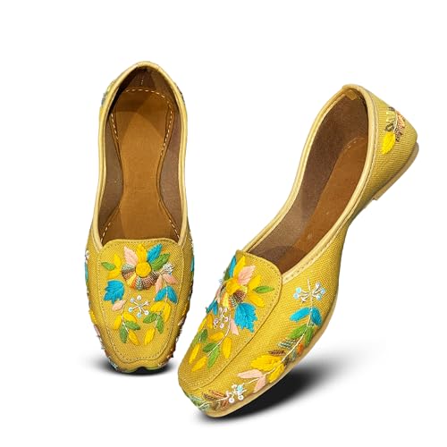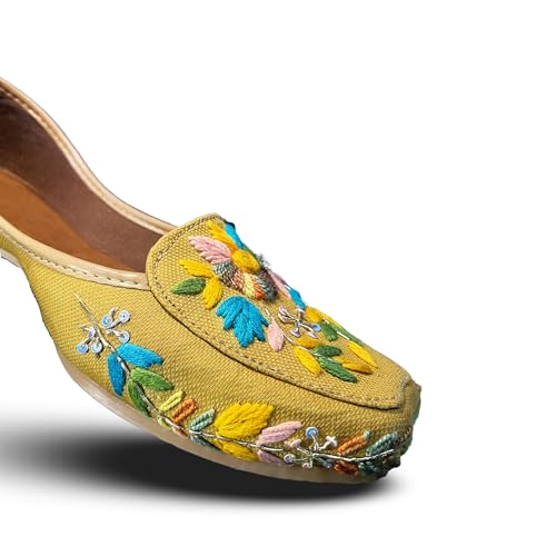STEPLOOM Women’s Loafer-Style Punjabi Jutti | Handcrafted Embroidered Ethnic Mojari | Soft Cushion Footbed | Traditional Casual Wear for Weddings & Festive Outfits (Mustard Yellow, UK Footwear Size System, Adult, Women, Numeric, Medium, 4) Amazon.in: Shoes & Handbags